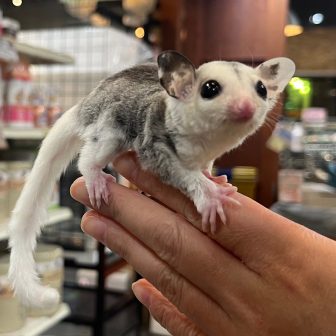 フクロモモンガが入荷致しました♪①モザイク 男の子お耳がマーブル模様でかわいい!!②ホワイトフェイス 女の子小顔でとってもかわいい!!まだお店に来たば…