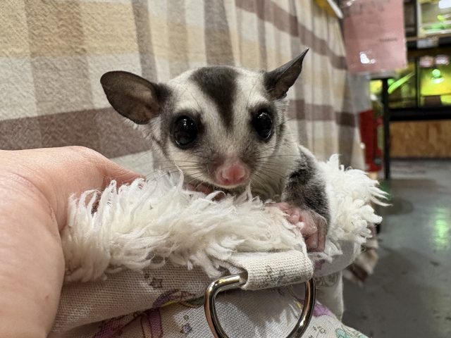 おとなしい性格の子なので、初めてフクロモモンガを飼育をする方にもおすすめです♪