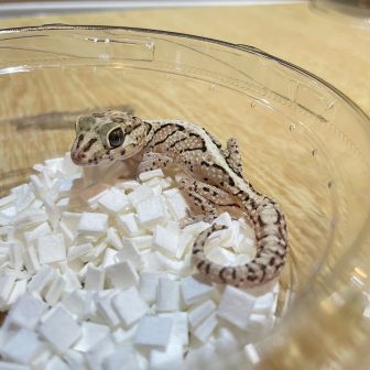 小さい宝石が散りばめられたような模様がかわいい小型のヤモリエレガンスボウユビヤモリが4匹入荷致しました!!餌はSサイズのコオロギを食べます。水もよく…
