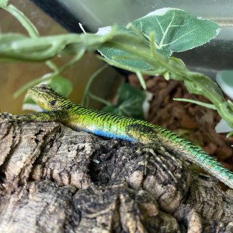 マラカイトハリトカゲのオスが入荷致しました!餌は生きたコオロギなどを与えています。流木などでレイアウトをすると登っている姿なども見れて面白いですよ…