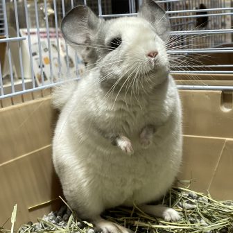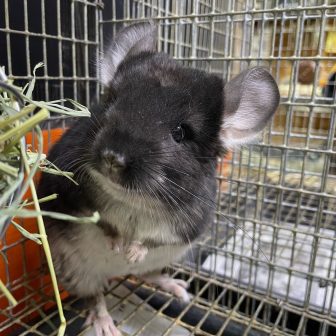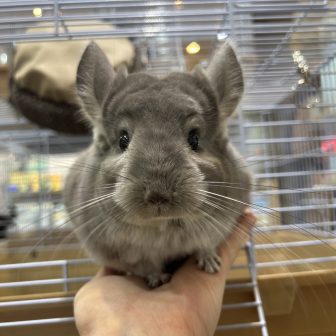今月の頭に仲間入りしたむちむちチンチラがだいぶ懐っこくなりました!!通常の子よりも首回りなどモフっとしていて毛量も申し分ないバイオレット君です♪目が…