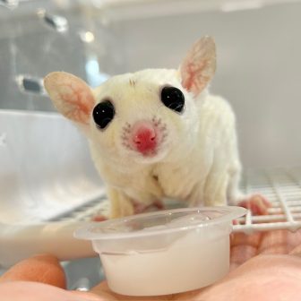店長ブリードの真っ白なフクロモモンガ!リューシスティックの男の子です(`・ω・´)すくすく成長しており、フクロモモンガ界では男の勲章である頭の上のハゲも立…