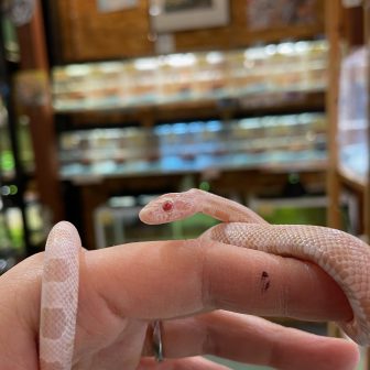 新入荷のコーンスネーク達のご紹介です!①スノー ♀黒色色素が欠乏している「アメラニスティック」 × 赤色の色素が欠乏している「アネリA」を交配…