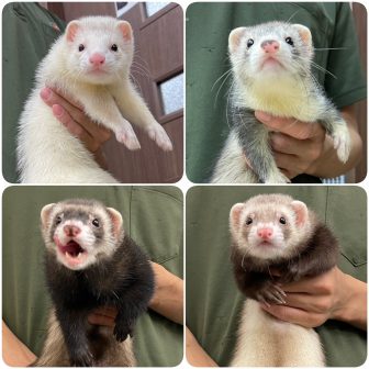 マウンテンビューフェレットが5匹仲間入りしました(^^♪今回は黒率高めですが、唯一の色変わりでシルバーミットが来ています!テンション高めな男の子やマイ…