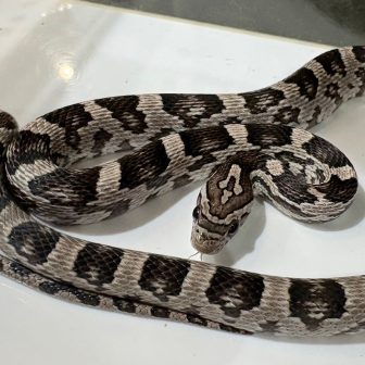 コーンスネーク(アネリ)が入荷しました!赤色の色素が欠乏しており、本来の色である赤がぬけてモノトーンのような色合いになります!!成長とともに色が変わ…