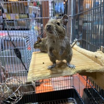 スタッフおすすめのデグーちゃんをご紹介します!!とっても可愛いノーマルパイドの3姉妹!!お転婆でとっても可愛い子達です!!手の上にも乗って来てkれ…