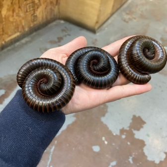 トーゴオオヤスデが入荷致しました!(^^)!手に乗せたりすることもできます。丸まっているフォルムがアンモナイトみたいで可愛いです(^^)/お店ではバナナの皮な…