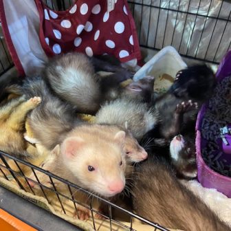 マウンテンビューフェレットの赤ちゃんが5匹やってきました!!すでに歯がゆいようでカミカミしていたので、豚の鼻をあげたらむしゃむしゃ食べていました(*‘…