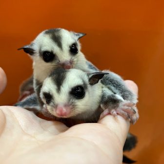 新入荷のフクロモモンガ達のご紹介です♪お店に来たばかりですがとてもよく慣れているので手に乗せたりする事もできますよ(*´▽`*)①モザイク 女の子目がまん…
