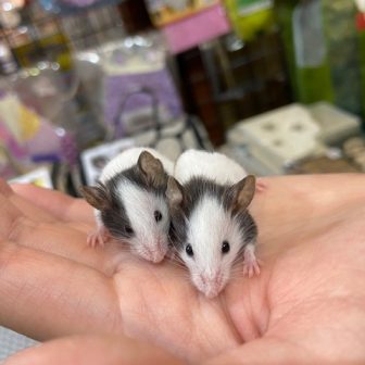 パンダマウスが入荷しました!牛柄の小さなネズミさんです!大人になっても手方におさまるサイズの子になります(*^^*)模様の入り方が少しずつ違うので是非お…