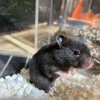 明日よりお迎え開始のゴールデンハムスターです。スキニーゴールデンハムスターの遺伝が入っている子達です(^o^)丿男の子毛足が少し長めです。女の子まっくろ…