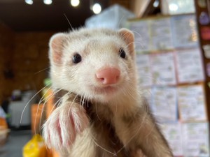 現在、お店で販売しているワクチン1回接種済みのマーシャルフェレットのご紹介です♪2匹とも目がまんまるで可愛い顔をしています!性格もおっとりマイペース…