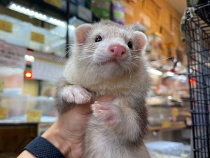 ばっちり人に馴れている男の子(生後3ヵ月程)のご紹介です!最近はリードを付けてお散歩の練習をしています!人以外にもフェレットとも仲良くできる子なので…