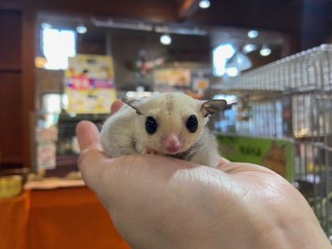 国内ブリードのフクロモモンガが入荷致しました!!①プラチナ 男の子珍しいカラーの子です。耳がまんまるで黒くて可愛いです!!②リューシスティック 女の…