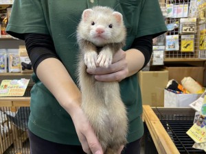 生後約2カ月のマーシャルフェレットをご紹介します!鼻がきゅっとつまっている丸顔が可愛らしいシャンパンの男の子です(^^)/一緒に来た子達の中で1番体格が…