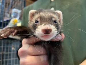 生後約2カ月半のマウンテンビューフェレットをご紹介します!ぱっちりな目が可愛らしいシルバーの美人さんです(^^)/人と遊ぶのが大好きな子で、すでに甘嚙み…