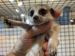 性格がとてもいい子なミーアキャットの男の子の赤ちゃんです!お店に来てから5日、ご飯もばくばく食べてくれているので、赤ちゃんではありますが初めての方…