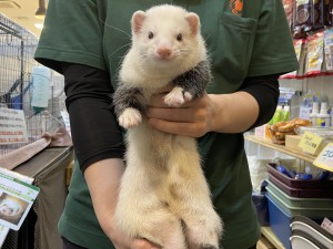これから手術をする予定のネザーランドビッグラインフェレットの男の子をご紹介します! 現在お店にいるフェレットの中で唯一の白系カラーで、お腹に面白い柄…