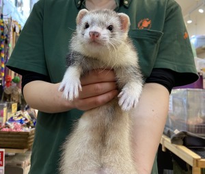 ネザーランドビックラインフェレット店頭デビュー!!手術済の子が本日、店頭デビューしました!!男の子なので去勢手術と臭腺除去手術が終了しております!…