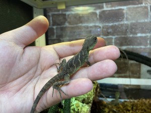 インドシナウォータードラゴンのベビーが5匹入荷しました!! かなり小さい手の指と同じくらいのサイズの子達です♪赤ちゃんではありますがしっかりとバスキング…