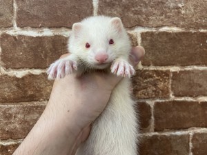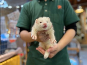 先週、入舎したファーファームフェレットのベビーも残り3匹となりました!!今回ご紹介するのは白い子が好きな方にはたまらない!!色変わりのレアカラーの…
