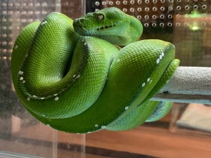 グリーンパイソンアダルトからベビー計6匹入荷致しました!!➀アルーお腹側の青色の美しい個体です。所々に青色の出てきている個体です。このまま仕上げて行…