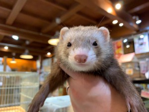 現在お店で販売しているモコフェレットのご紹介です♪毛質が猫毛のように柔らかくマイクロチップが入っているのが特徴のフェレットです。活発な子が多いので筋…