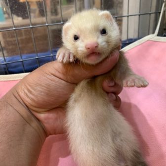 ちょっと変わった模様のフェレットをご紹介します(^^)/生後約3カ月半の女の子で整った顔立ちの美人さんです♪人と遊ぶのが好きでぴょんぴょん遊ぶ姿は可愛らし…