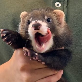イケメンなマーシャルフェレットのシルバーをご紹介します(^^♪まったりとした性格で体格もむっちりでコロコロしています♪ちょっと水の飲み方がへたっぴですが…